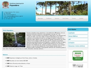 Apresentação da cidade e da prefeitura, contas públicas, comunicação online, diário oficial, informações túristicas, fotos, agenda, contatos...