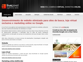 A Live Pixel é uma agência web especializada em desenvolvimento de websites, utilizando das mais modernas ferramentas de webdesign na criação. Nós também desenvolvemos e damos suporte a sua loja virtual.