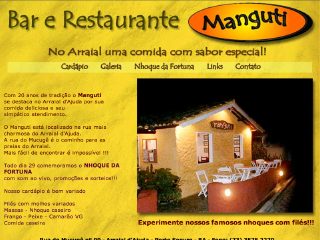 Com 20 anos de tradição o Manguti se destaca no Arraial d'Ajuda por sua comida deliciosa e seu simpático atendimento. Especialidades de nhoques. Ele está localizado na rua mais charmosa do Arraial d'Ajuda.