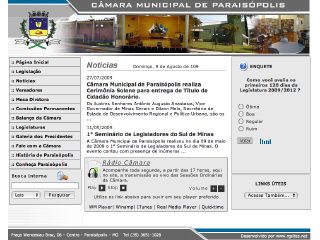 Apresentação da cidade e da Câmara Municipal de Paraisópolis, contas públicas, comunicação online, diário oficial, agenda, contatos...